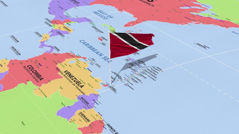 Trinidad and Tobago Flag Waving in Wind, World Map Rotating around Flag, Seamless Loop, 3D Rendering Free Video