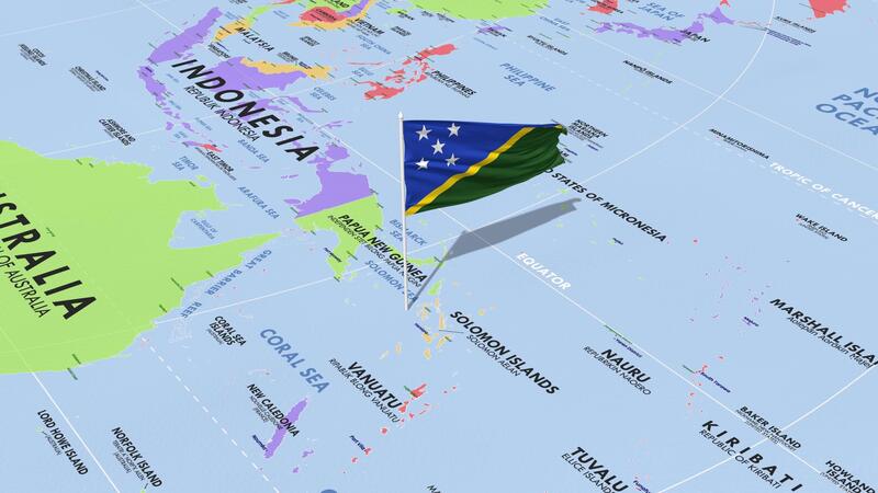 Solomon Islands Flag Waving in Wind, World Map Rotating around Flag, Seamless Loop, 3D Rendering Free Video