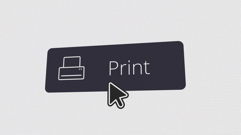 cursor clicks print button, printer printing a document or photo image, computer screen effect, motion graphics animation Free Video