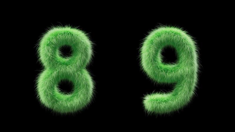 3D animation grassy numbers 8 and 9. Sign in the style of field grass. The file contains an Alpha Channel. ProRes4 RGBA Pro Video