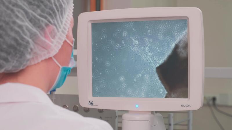 A sample of a substance under a microscope displayed on monitor Pro Video