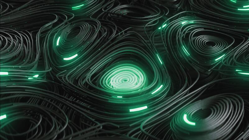 Black topographic circular lines with running matrix code and with green neon Pro Video