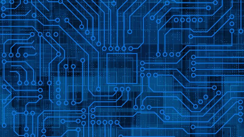 Blue Computer chip with connections and signals. AI Computer processor background.Mother board circuit pattern background Free Video