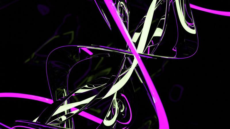 Futuristic 3d structure with rotating spiral on a black background. Design. Metal abstract reflective lines bending and flowing diagonally. Pro Video