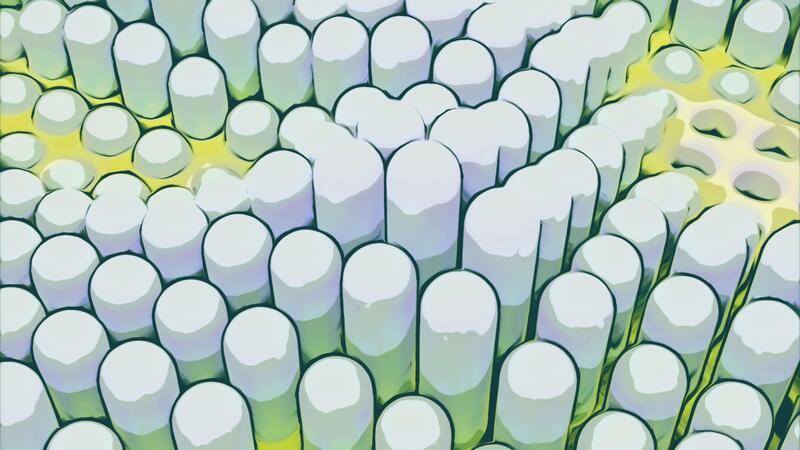 Surface with numerous repeating cylinders. Design. Isometric background with dynamic effect. Pro Video