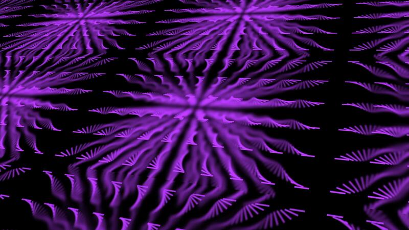 Abstract digital surface divided into squares with purple spirals. Animation. Rows of many narrow twisting vortex shapes on a black background. Pro Video