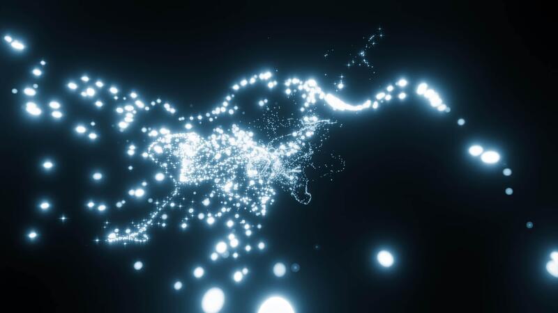 Tiny shimmering bokeh particles moving fast on a black backdrop. Design. Neon round shaped dots. Pro Video