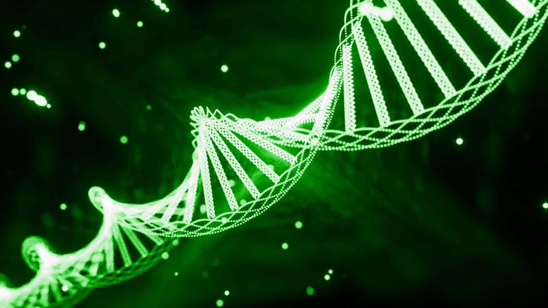 Rotating luminous spiral of dna. Design. Virtual chains of dna and genes in rotating spiral. Beautiful dot helix of dna moves and rotates with particles of chain Pro Video