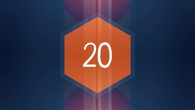 The number 20 appears and has glow and light streaks. Numbers Animation with Alpha Channel Pro Video