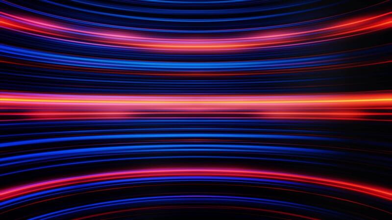 Waving stripes of shimmering light moving endlessly and parallel to each other. Abstract colorful background with curved, red and blue lines, seamless loop. Pro Video