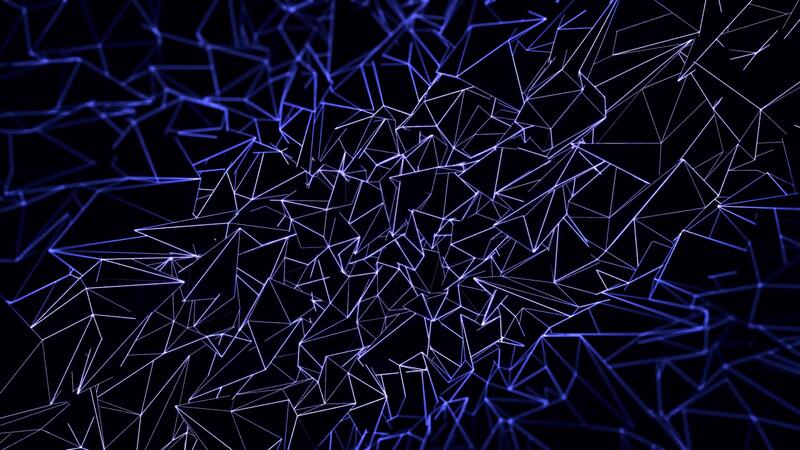 Blue and purple triangles moving animation on black background, seamless loop. Geometrical shapes and figures rotating endlessly, mosaic pattern. Pro Video