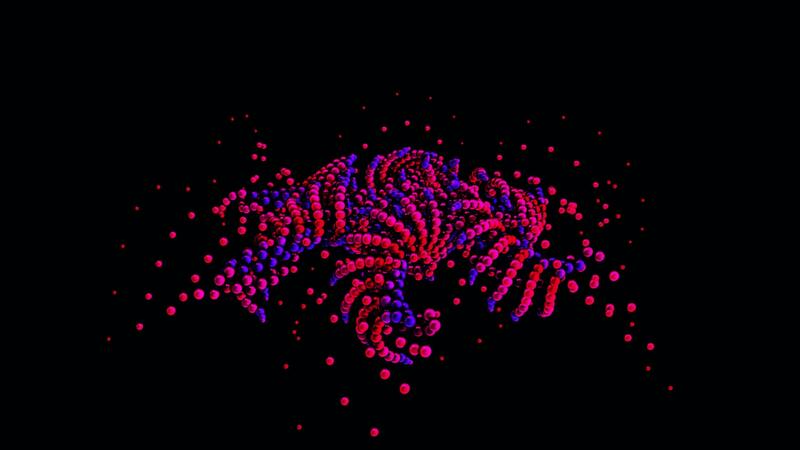 Abstract small circles of pink and blue color spreading all over the screen, seamless loop. Animation. Amazing moving wavy rows of tiny particles. Pro Video