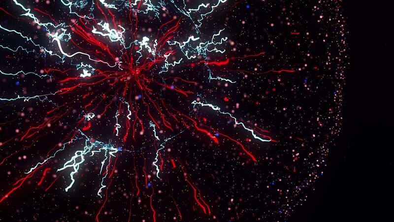 Beautiful star exploding and transforming into thousands of small objects and impulses icolated on black background. Animation. Beautiful rotating round figure. Pro Video