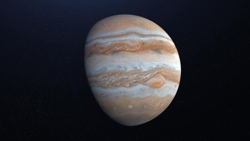 Abstract planet Jupiter rotating in outer Space. Animation. Sunrise and Sunfall on the colorful white and brown Surface of the Jovian planet, seamless loop. Pro Video