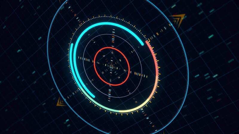 Future technologies, abstract guidance system isolated on a black background. Animation. Close up of rotating neon parts of searching digital program, seamless loop. Pro Video