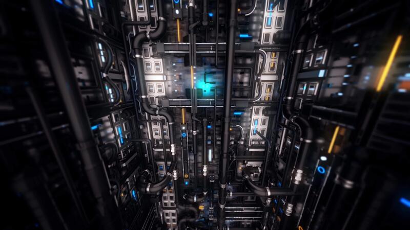 Abstract new details of mechanism with many pipes and colorful indicators, seamless loop. Animation. 3D generated technological industrial template, view inside of a machine. Pro Video