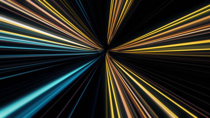 Abstract colorful glowing lasers forming speed tunnel on black background, seamless loop. Animation. Motion graphic backdrop, Speed of light, neon glowing rays in motion. Pro Video