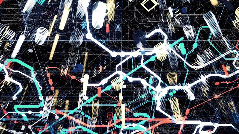 High tech computer circuit board with many signals flowing fast on black background, modern technologies concept. Animation. Abstract schematic microcircuit. Pro Video