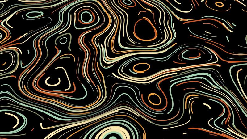 Abstract colored moving curved lines forming many different shapes on black background, seamless loop. Animation. Beautiful neon narrow lines moving endlessly. Pro Video