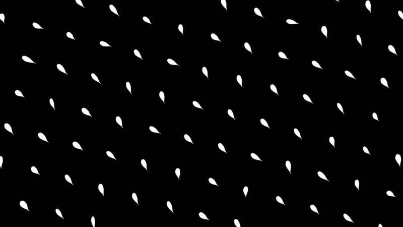 Abstract white flower leaves flowing isolated on black background, seamless loop. Animation. Rows of small petals moving and rotating, monochrome. Pro Video