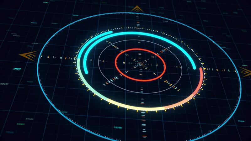 Abstract animation with circles in spy style. Animation. Computer graphics circles of strokes in futuristic style. Neon techno circles in scientific computer graphics Pro Video