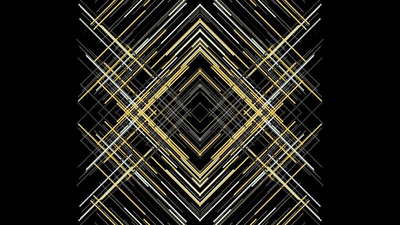 Abstract rhombus frames of yellow color moving on black background, seamless loop. Animation. Narrow straight beams flowing into different directions. Pro Video