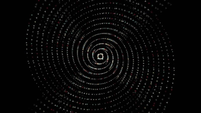 Abstract small triangles moving on a spiral trajectory and flying towards the camera, amazing 3D effect. Animation. Spinning geometric figures on black background. Pro Video
