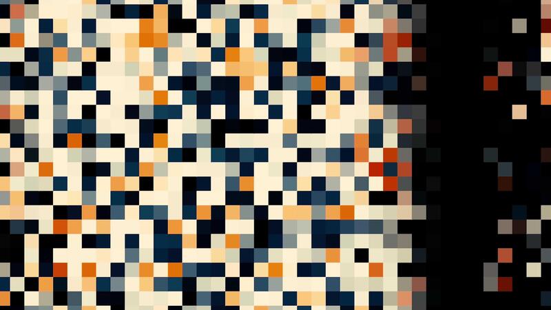 Abstract rows of colorful pixels blinking and moving from right to left on black background, seamless loop. Animation. Small squares of different colors flowing and blinking. Pro Video