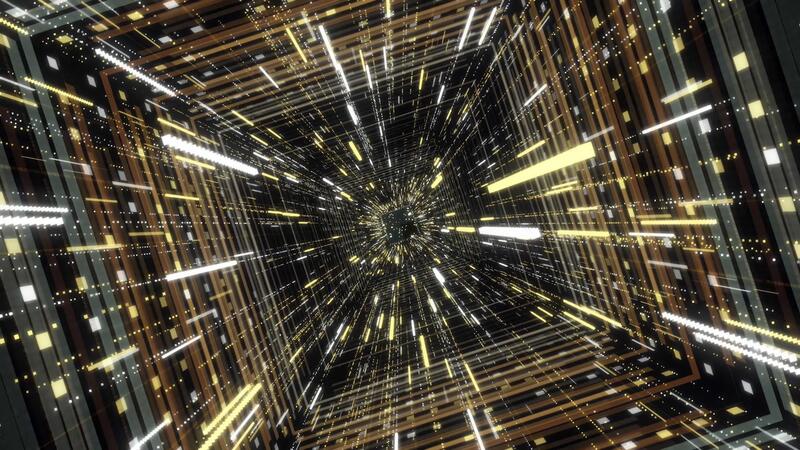 Hyperspace jump through stars, time, and cosmic tunnel, seamless loop. Animation. Abstract flight through 3D futuristic tunnel and flowing bright particles. Pro Video