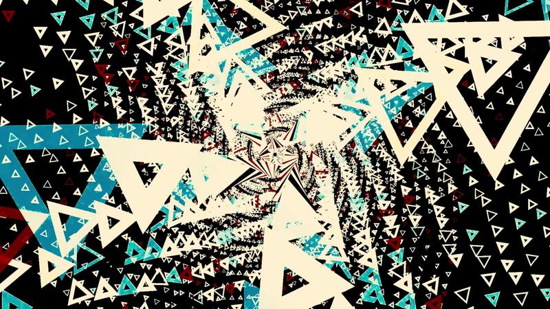 Abstract psychedelic tunnel formed by many triangle frames rotating and flying away in the darkness, Animation. 3D amazing graphics motion. Pro Video