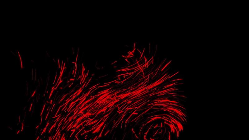 Amazing red stream of narrow short lines slowly flow on black background, seamless loop. Animation. Abstract motion of straight and bended lines. Pro Video