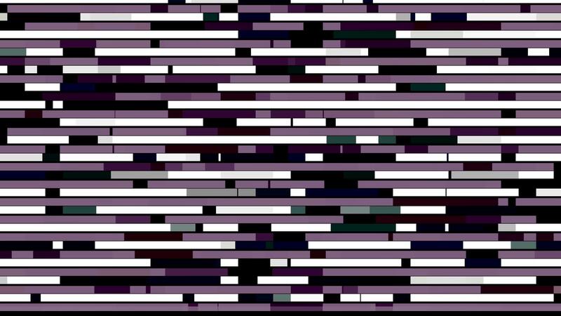 Abstract horizontal parallel rows of short lines moving into the different directions on black background, seamless loop. Animation. Purple and white segments appear and flow fast. Pro Video