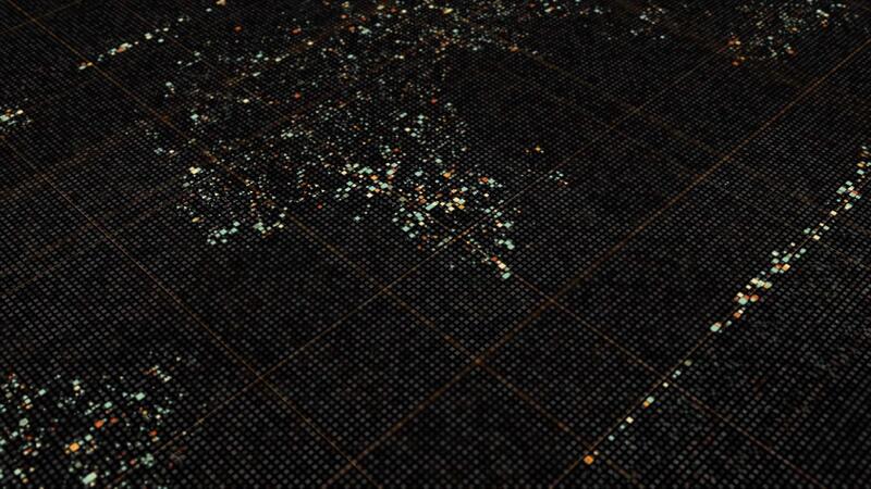 Abstract animation of world map in digital screen formed by tiny figures. Animation. Digital screen with continents flowing slowly on black background, seamless loop. Pro Video