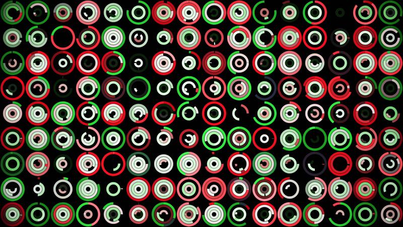 Plenty of small multicolored circles spinning on the black background in different sequence. Animation. Beautiful abstract background. Pro Video
