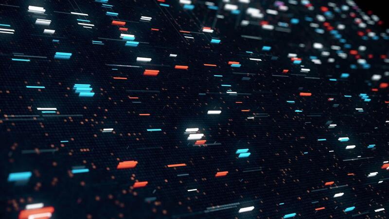 Abstract pixel pattern on black background, seamless loop. Animation. 3D mosaic and square shaped texture with flowing colorful horizontal stripes in space. Pro Video