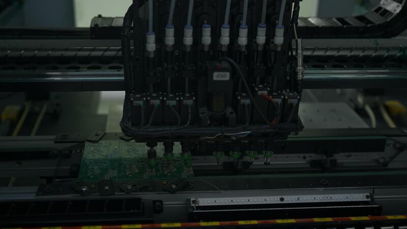 Production line with computer processors on electronics factory. Creative. Microchip production process. Pro Video