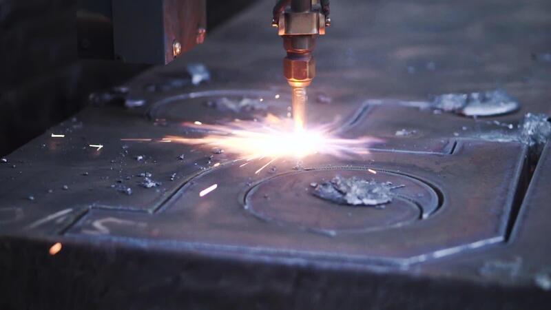 Close-up of metal pattern welding machine. Clip. Automated welding machine creates beautiful patterns on metal in factory. Factory welding patterns on metal Pro Video