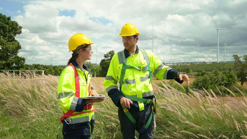 people engineer are wearing a protective helmet on head, using tablet Analytics engineering data Free Video