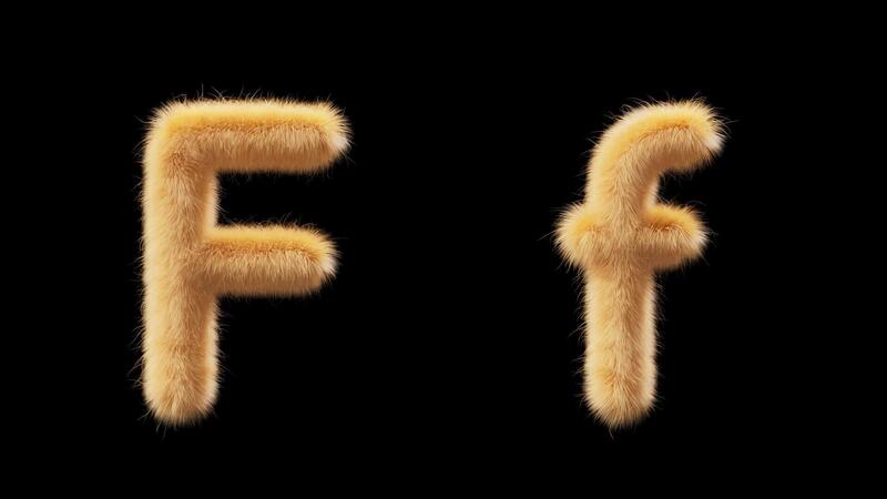 3D animation of a uppercase and lowercase woolen letter F. Wool in the style of the pet Chick. The file contains an Alpha Channel. ProRes4 RGBA Pro Video