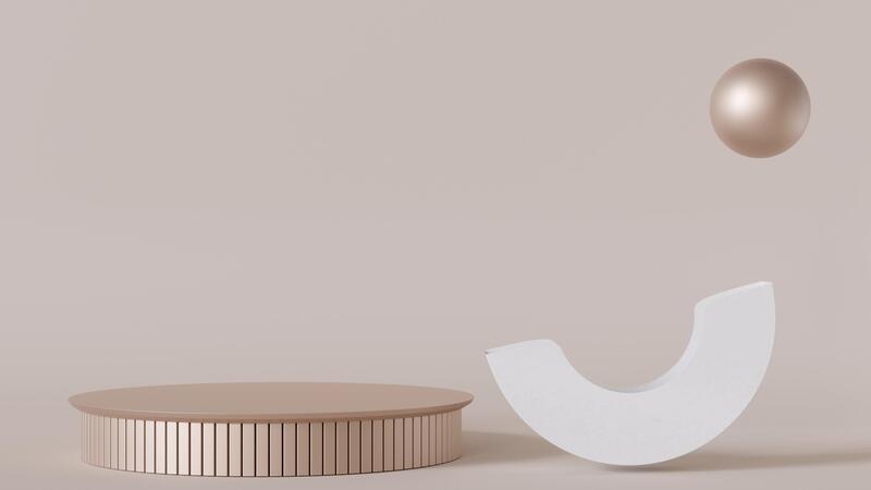 Minimalist scene with abstract white and metallic shapes. Beige background. Template for product, cosmetic presentation. Mock up. Backdrop with empty, copy space. Display, showcase. 3D animation Pro Video
