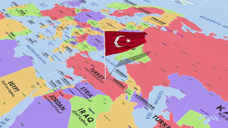 Turkey Flag Waving in Wind, World Map Rotating around Flag, Seamless Loop, 3D Rendering Free Video