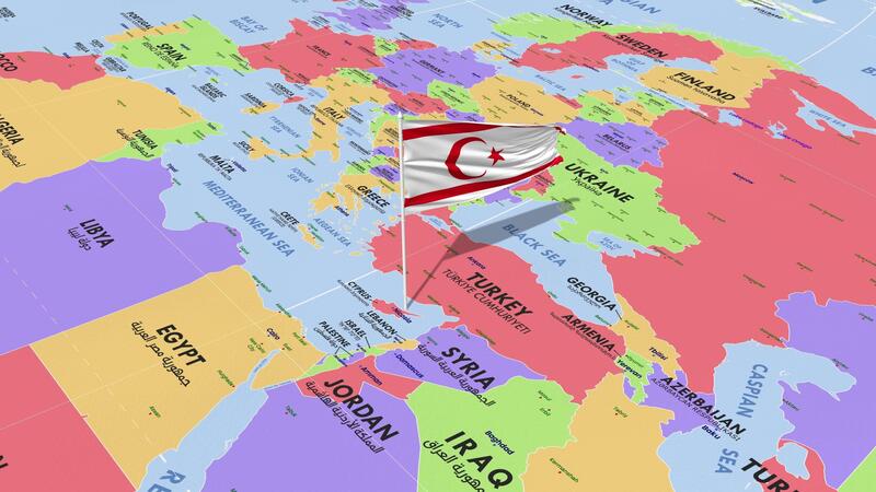 Northern Cyprus Flag Waving in Wind, World Map Rotating around Flag, Seamless Loop, 3D Rendering Free Video
