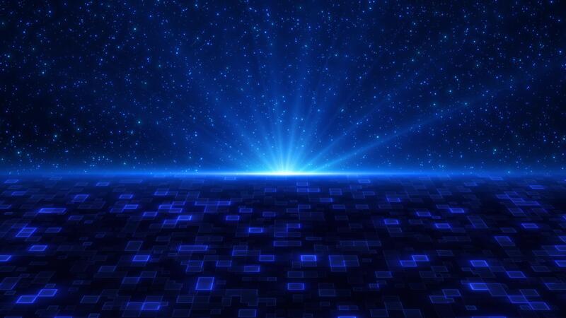 Abstract scene of futuristic cyber world with flying particles, sci-fi mesh, glowing technology surface, neon night scene, digital science background 4K animation, virtual reality Pro Video