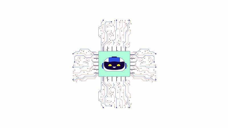 AI microchip cpu line 2D object animation. Circuitry motherboard. Innovative tech flat color cartoon 4K , alpha channel. Artificial intelligence chip circuit animated item on white background Pro Video