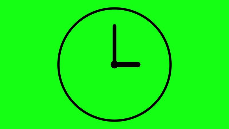 Clock animation in 12 hour loop animation. Stopwatch animated icon. Clock with moving arrows on green background Pro Video