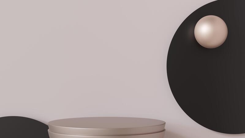 Minimalistic scene with black circles and metallic sphere. Beige background. Template for product, cosmetic presentation. Mock up. Backdrop with empty, copy space. Display, showcase. 3D animation. Pro Video