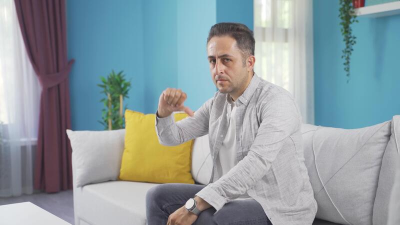 Man looking at camera with a negative expression. Pro Video