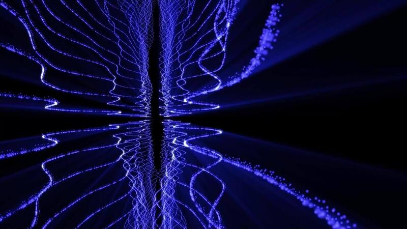 Energy field of abstract double blue abstract double waves of luminous particles on dark background. Symmetrical background. Free Video