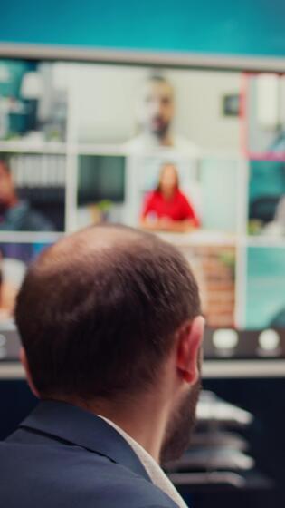 Business associates meeting with stakeholders on a call connection, sharing insight and updates on a new development project. Executive board members discussing about firm growth. Camera B. Pro Video