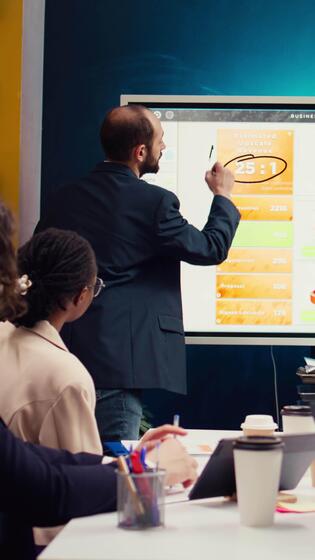 Human resources manager addressing the need of new talent within the business organization, creating a pitch for obtaining new collaborations under signed contracts for development. Camera B. Pro Video